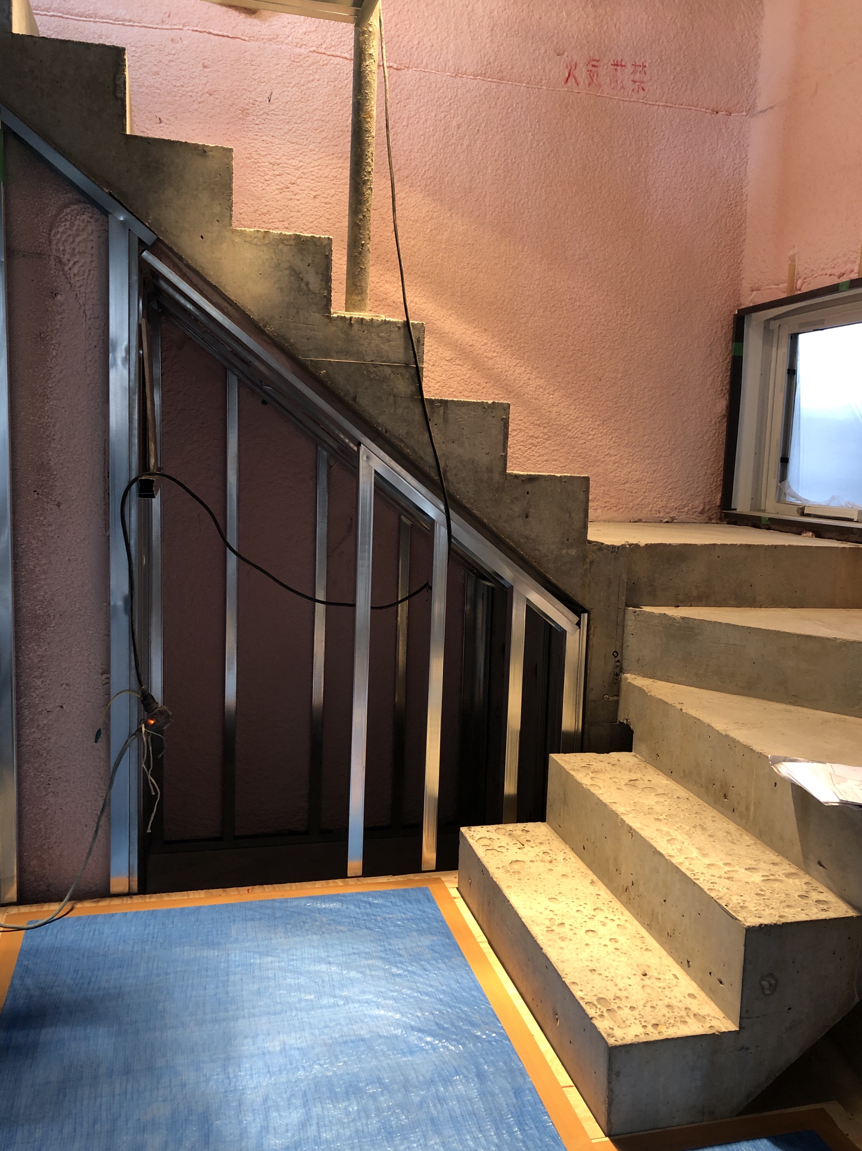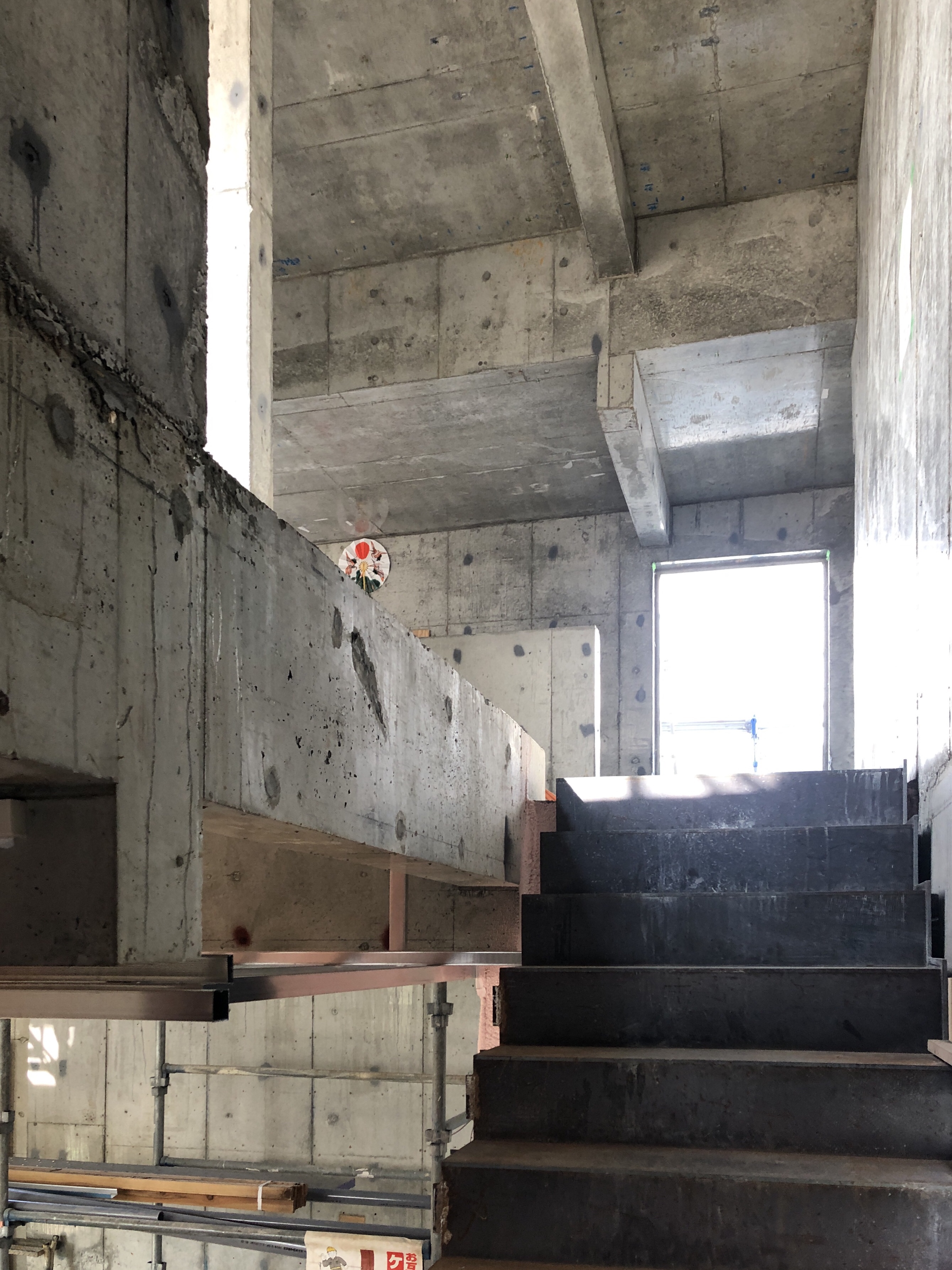 現在3階部分はまだ吹付断熱が施されていませんし、間仕切り壁もありません。現場途中でしか見れない独特な空間となっています。