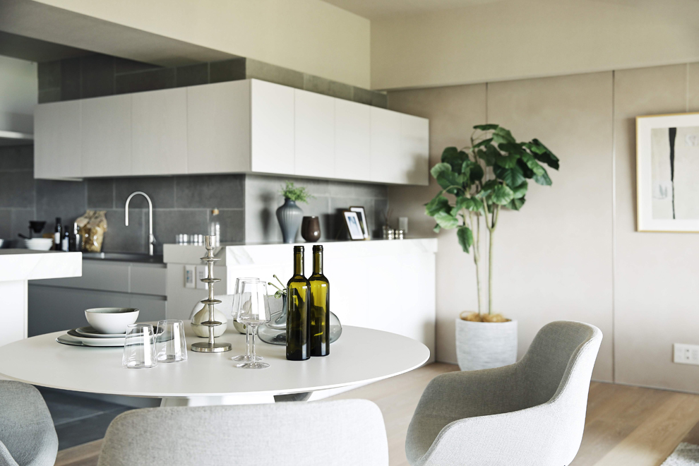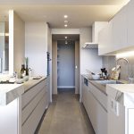 • 複雑に見えて、シンプルな二型キッチン 壁側にシンクとコンロを設置