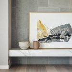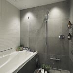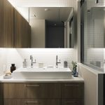 • 左側の白い壁は洗面と同じタイルを貼り、洗面と一体感を出している