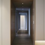 • 廊下より玄関ホールをみる 左が玄関、右がリビング、奥がパントリーへ続く