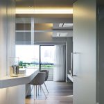 • LDKへ 透明ガラスに貫通しているような飾棚 LDKと導く