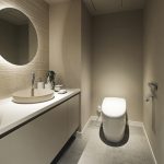 • グレージュにまとめられた落ち着いたゲスト用トイレ