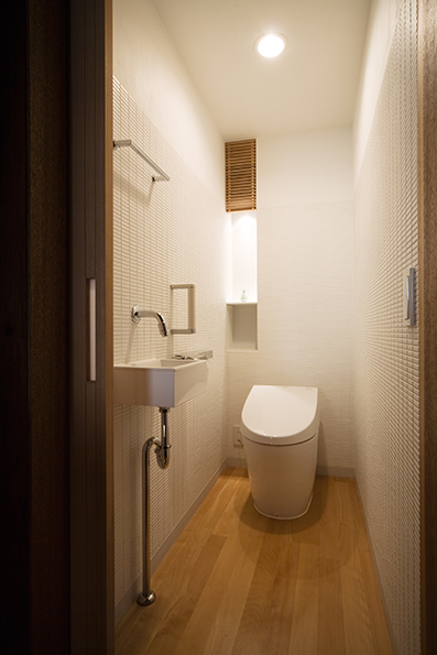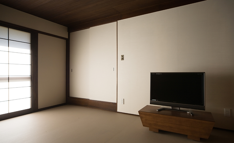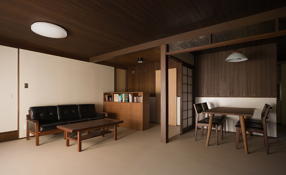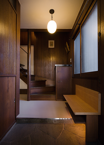 築48年 戸建住宅のリフォーム ?「機能設備改修」と「生活習慣保存」?住み心地は良くしたいが、リフォームに伴う生活習慣は変えたくない、との要望により、 機能・設備は強化させつつも、出来るだけ最小限の改修を心掛けた。 最小限の改修が、既存の外観・内観、そして住み心地、生活習慣と調和する事を目指し、家全体が再生する事を目指した。