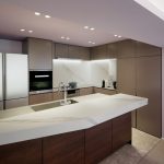 • アイランド + L型配置のオリジナルキッチン 右奥収納内には給湯器が設置されいてる