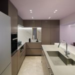 • キッチンのカウンターと壁面は大理石調のセラミックタイル